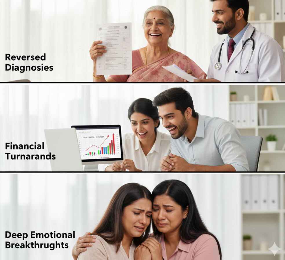 Measurable outcomes: from reversed diagnoses to financial turnarounds to deep emotional breakthroughs.